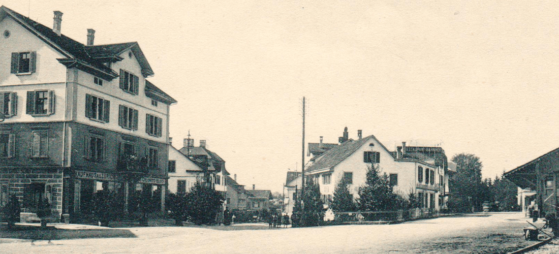 Blick auf die Bahnhofstrasse in Rüti um 1920: Der Geschäftsstandort seit 1917.